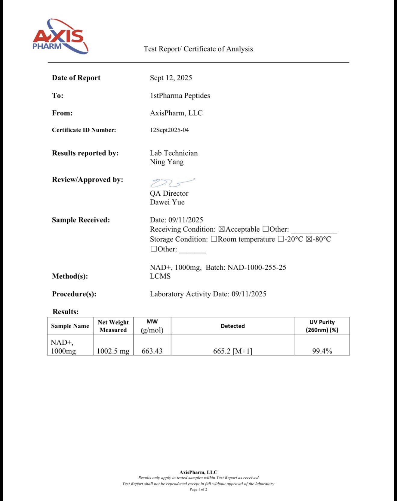 NOTE: Do not store NAD+ in the refrigerator after reconstituting. Doing so may cause the product to crystalize.